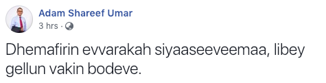 އާދަމް ޝަރީފް މިހެން ވިދާޅުވެފައިވަނީ މިއަދު އޭނާ ފޭސްބުކްގައި ޖެހި ސްޓޭޓަސްއެއްގައެވެ. ނަމަވެސް މިހާރު ވަނީ މި ސްޓޭޓަސް ޑިލީޓު ކުރައްވާފައެވެ.