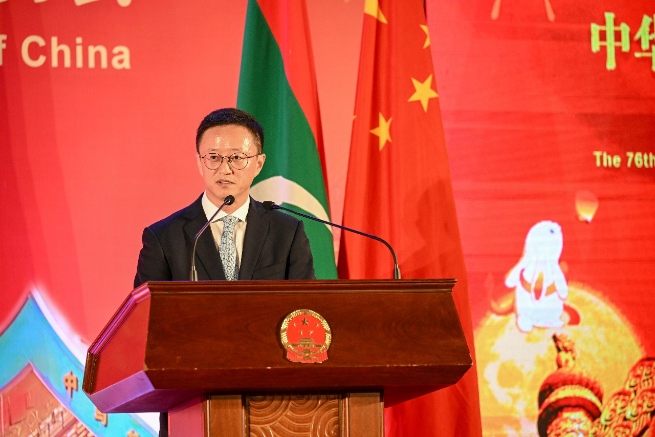 ޗައިނާގެ 76 ވަނަ ޤައުމީ ދުވަހާއި މިޑް އޯޓަމް ފެސްޓިވަލް ފާހަގަކުރުމަށް ބޭއްވި ޖާފަތުގައި ވާހަކަދައްކަވަމުން ރާއްޖޭގައި ހުންނަވާ ޗައިނާ ސަފީރު ކޮންގް ޝިންހުއާ ވަނީ އެޤައުމުން ރާއްޖެއާމެދު ދެކެމުން އަންނަ ގޮތް ވަރަށް ސާފުކޮށް ބަޔާންކޮށްދެއްވާފައެވެ. ސަފީރު ކޮންގް ޝިންހުއާ ވިދާޅުވީ ރާއްޖެއާ ޗައިނާ އާ ދެމެދު ސިޔާސީގުޅުން ގާއިމްކުރިތާ ބައިގަރުނަށްވުރެ ގިނަ ދުވަސް ވެގެންދިޔައިރު، ދެޤައުމުގެ އޮތީ ވަރަށް ބަދަހި ނަމޫނާ ގުޅުމެއް ކަމަށެވެ.