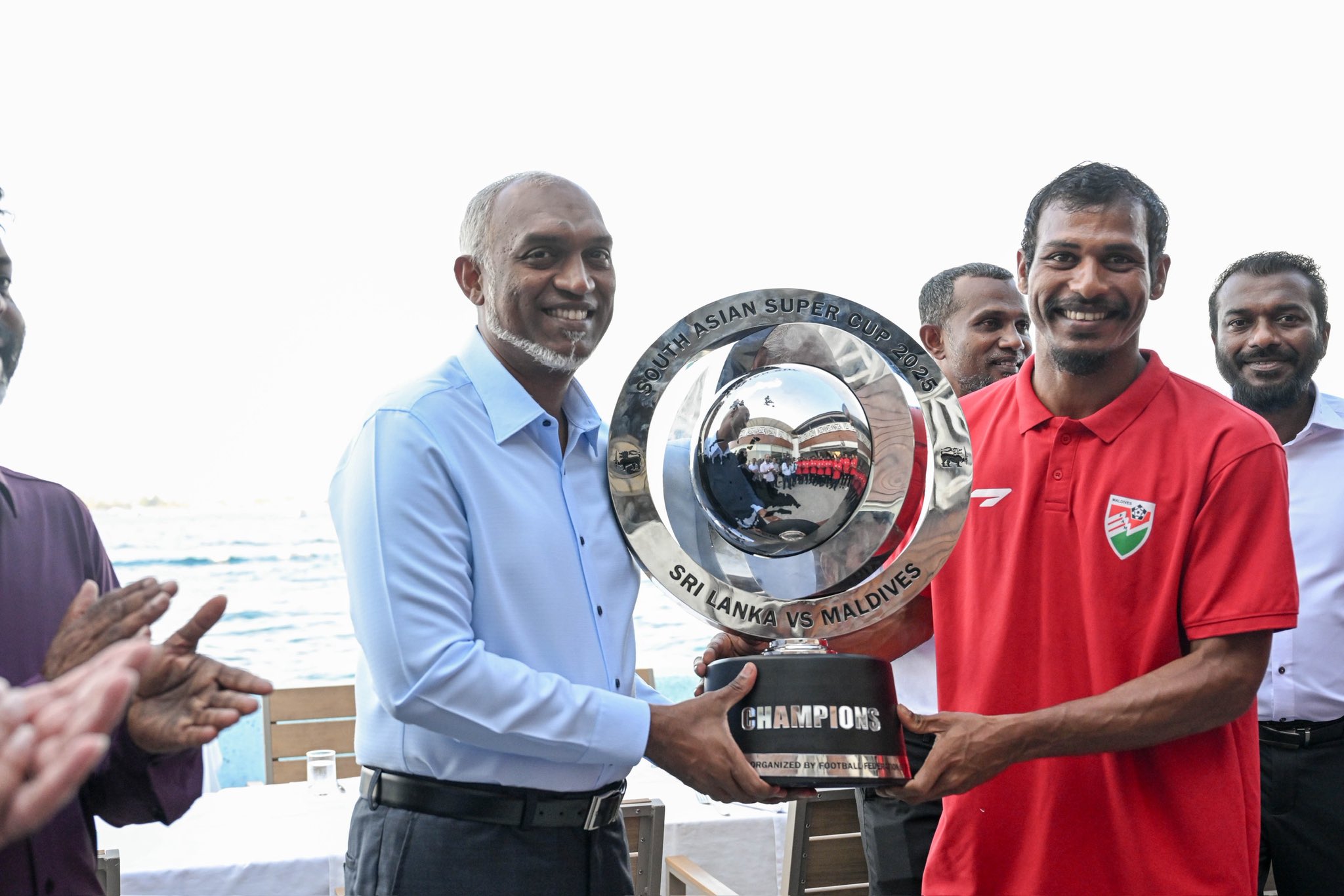 ރައީސުލްޖުމްހޫރިއްޔާ ވަނީ ރާއްޖޭގެ ޤައުމީ ފުޓްބޯޅަ ޓީމް، ސައުތު އޭޝިއަން ސުޕަރ ކަޕް 2025، ކާމިޔާބުކުރިކަން ފާހަގަކުރައްވައި ކުރިއަށްއޮތް ތަނުގައިވެސް ރާއްޖެއަށް ރީތި ނަން ހޯއްދަވައިދެއްވުމަށް އެދިވަޑައިގެންފަ އެވެ. ރައީސުލްޖުމުހޫރިއްޔާ ވަނީ، ޤައުމީ ޓީމު ކުރަމުން އަންނަ މަސައްކަތަށް ހިތްވަރު ދެއްވައި، އަބަދުވެސް ޤައުމީ ޓީމަށް ކާމިޔާބީއަށް އެދިވަޑައިގެންފަ އެވެ.