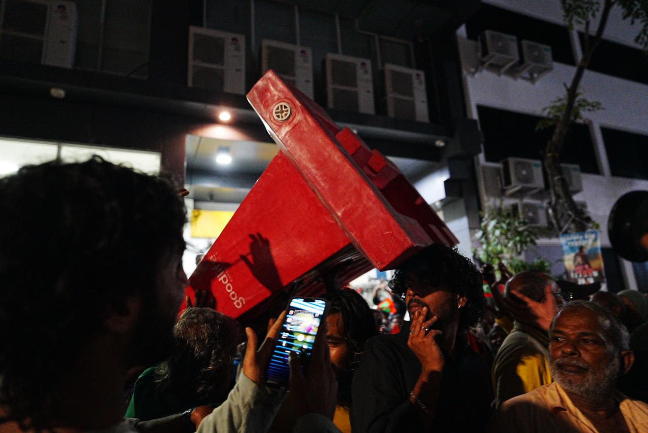 ނަމަވެސް އެކަމަށް އިޖާބު ނުދީ މުޒާހަރާގެ ބައިވެރީން ފުލުހުންނާއި ދިމާއަށް ގަލާއި ފެންފުޅި އުކައި, ފުލުހުންގެ އާލަތްތައް އަތުލަން މަސައްކަތް ފުލުހުންގެ ވާޖިބު އަދާކުރުމަށް ހުރަސްއަޅާފައިވާ ކަމަށެވެ.