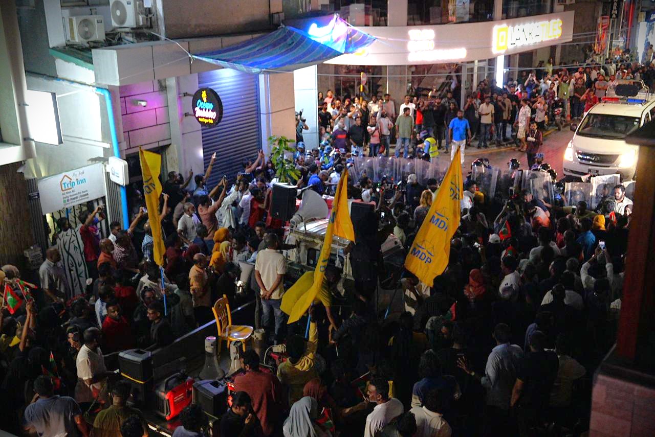 އެމްޑީޕީއިން ރޭ ކުރިއަށް ގެންދިޔަ ޙަރަކާތް ހަރުކަށި އިބާރާތުން ކުއްވެރިކުރަން. އެ ޙަރަކާތަކީ ރައްޔިތުންގެ ބާރާއި، ޚިޔާފާޅުކުރުމުގެ ޙައްޤުގެ ނިވަލުގައި، ޤާނޫނުއަސާސީއާއި ޤާނޫނު ހުއްދަކުރާ ހަމަތައް ގިރާކޮށް، ޤާނޫނީ ވެރިކަމަކާ ދެކޮޅަށް ރޭވިގެން ހިންގުނު ނިރުބަވެރި ޙަރާކާތެއްގެ ގޮތުގައި ސިފަކުރަން.
