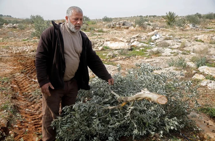 ފަލަސްތީނު މީހެއްގެ ޒައިތޫނި ގަހެއް ކަނދާލާފައި.. ފޮޓޯ: އޭއެފްޕީ
