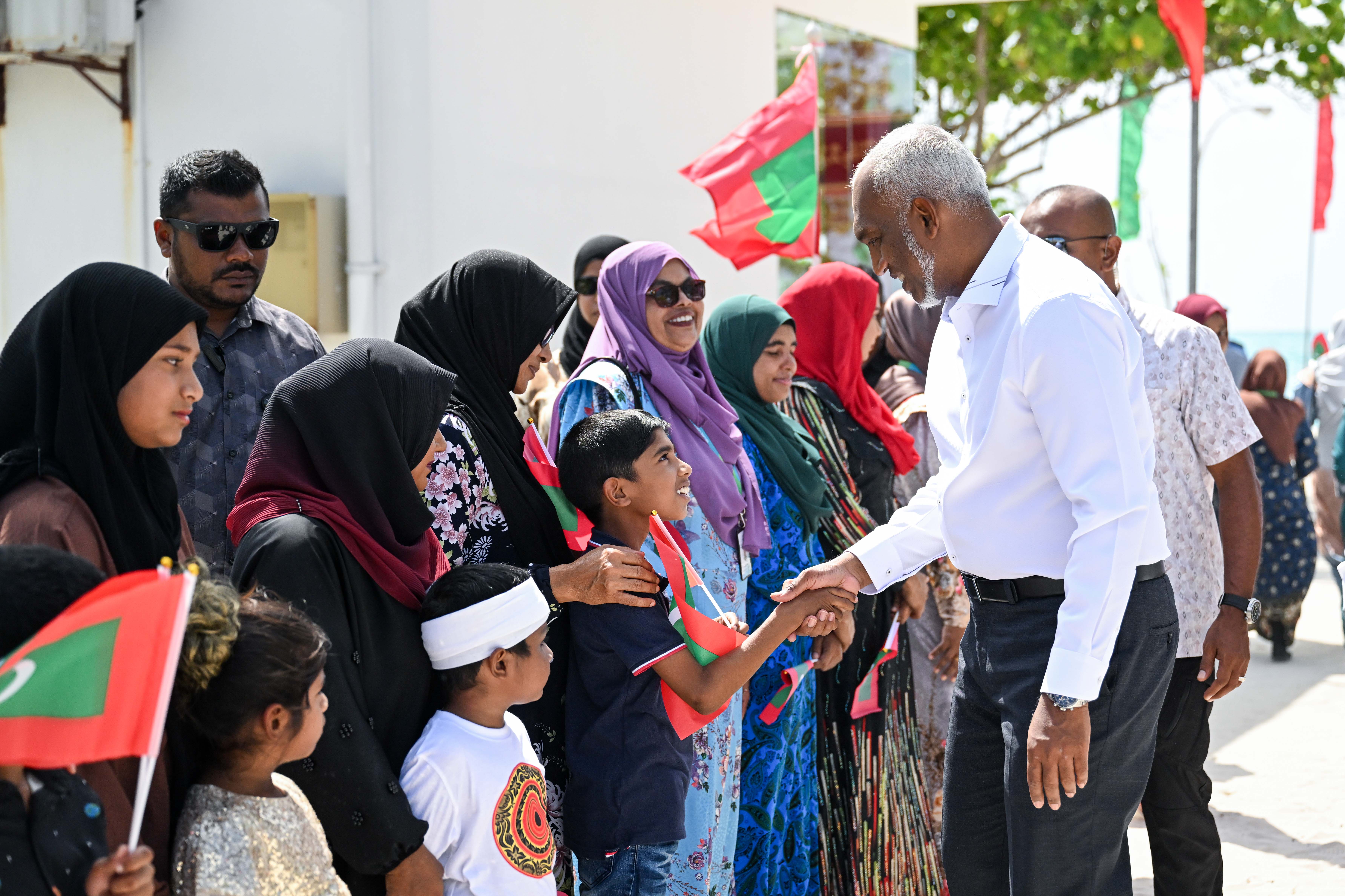 ރައީސް ތުލުސްދޫ ރައްޔިތުންނާ ސަލާން ކުރުމުގައި... ފޮޓޯ: ރައީސް އޮފީސް