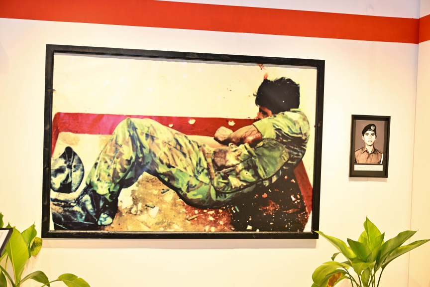 ޝަހީދު ހުސައިން އާދަމް، ދުޝްމަނުންގެ ހަމަލާގައި ވެއްޓިފައި އޮތްގޮތް ދައްކުވައިދޭ މަންޒަރު... ފޮޓޯ: