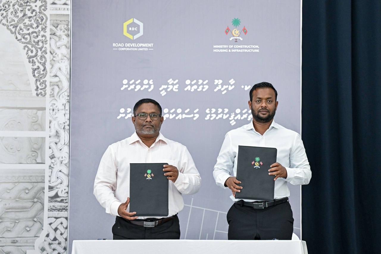 ކ. ކާށިދޫގެ މަގުތައް ޒަމާނީ ފެންވަރަށް ތަރައްޤީކުރުމުގެ މަޝްރޫޢުގެ އެއްބަސްވުމުގައި އިމާރާތްކުރުމާއި ގެދޮރުވެރިކަމާއި ބިނާރާ ބެހޭ ވުޒާރާގެ ފަރާތުން ސޮއިކުރެއްވީ ވަޒީރު ޑރ. ޢަބްދުﷲ މުއްޠަލިބެވެ. އަދި އާރްޑީސީގެ ފަރާތުން ސޮއިކުރެއްވީ އެކުންފުނީގެ މެނޭޖިންގ ޑިރެކްޓަރ އިބްރާހީމް ނަޒީމެވެ.