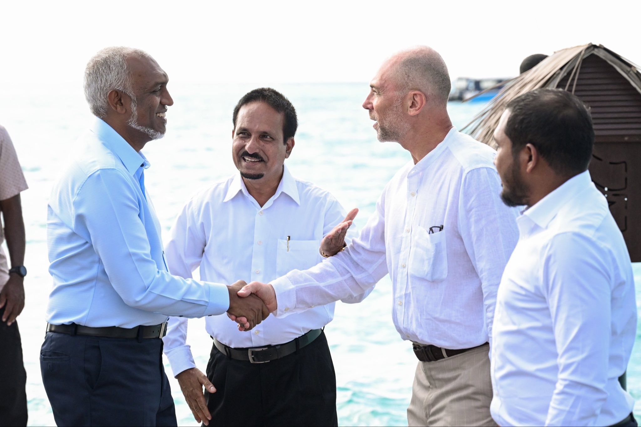 އައްޑޫގެ ވިލނގިލީގައި ހިންގާ ޝަންގްރިއްލާ ރިސޯޓު ހުޅުވަން ކުރައްވާ މަސައްކަތް ބައްލަވާލެއްވުމަށް ރައީސުލްޖުމްހޫރިއްޔާ ޑރ. މުޙައްމަދު މުޢިއްޒު އެ ރިސޯޓަށް ވަޑައިގެންފި އެވެ.