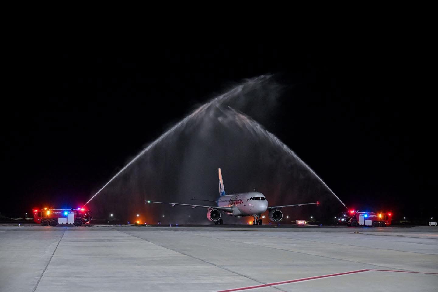 2465 މީޓަރުގެ ރަންވޭއަކާއެކު ތަރައްގީ ކުރެވުނު ހަނިމާދޫ އިންޓާނޭޝަނަލް އެއާޕޯޓް ރަސްމީކޮށް ހުޅުވުމަށް މިރޭ، އެ ރަންވޭއަށް އެންމެ ފުރަތަމަ ޖައްސާފައިވަނީ ރައީސުލްޖުމްހޫރިއްޔާ ދަތުރުފުޅުކުރެއްވި، މޯލްޑިވިއަންގެ އޭ-320 މަރުކާގެ މަތިންދާބޯޓެވެ. މިއީ ހަނިމާދޫ އިންޓަރނޭޝަނަލް އެއަރޕޯޓްގެ ތާރީޚުގައި އެއެއަރޕޯޓަށް ޖެއްސި އެންމެ ބޮޑު މަތިންދާބޯޓެވެ. މި ފްލައިޓްގެ ކެޕްޓަންކަން ކުރެއްވީ، ހދ. ހަނިމާދޫއަށް ނިސްބަތްވެވަޑައިގަންނަވާ ޕައިލެޓެކެވެ.