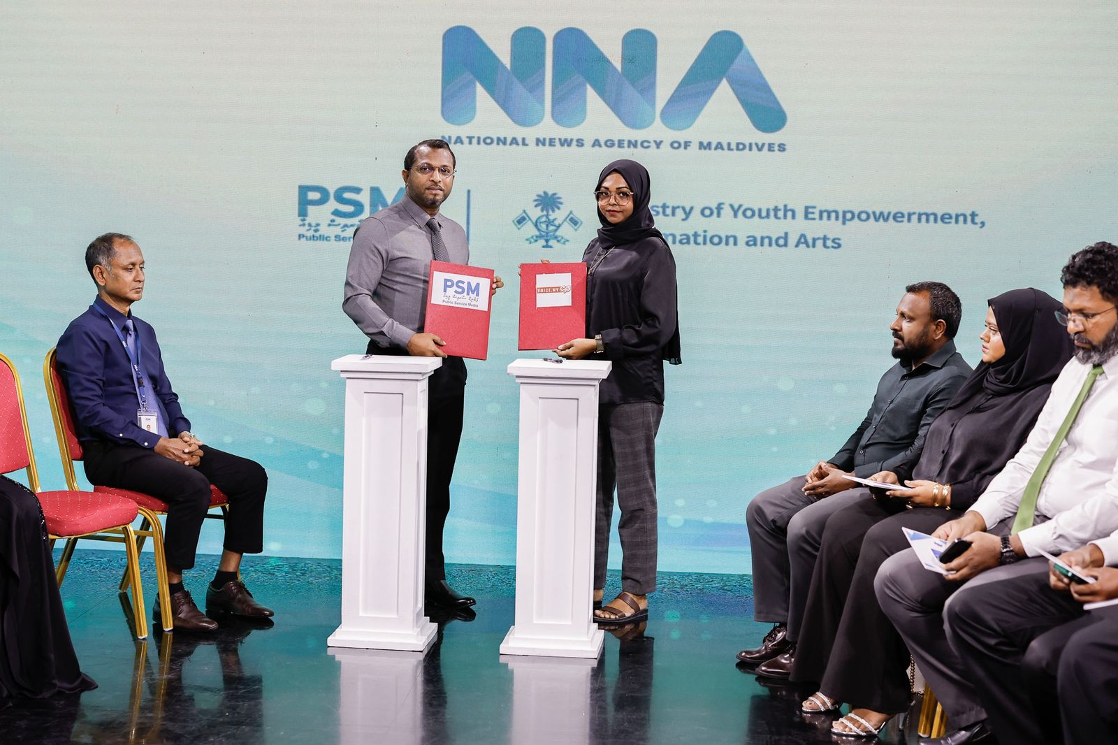 ނެޝަނަލް ނިއުސް އޭޖެންސީ އިފްތިތާހްކުރުން އޮތީ މިކަމަށްޓަކައި މިއަދު ދައުލަތުގެ މީޑިއާގައި ކުރިއަށްދިޔަ ހާއްސަ ރަސްމިއްޔާތެއްގައެވެ. މި ރަސްމިއްޔާތުގައި ނެޝަނަލް ނިއުސް އޭޖެންސީގެ ލޯގޯ އާއި ވެބްސައިޓްގެ އިތުރުން ކާޑު އިފްތިތާޙުކޮށްދެއްވީ ރައީސުލްޖުމްހޫރިއްޔާގެ ތަރުޖަމާން ހީނާ ވަލީދާއި ޒުވާނުން ބާރުވެރިކުރުމާއި މަޢުލޫމާތާއި ފަންނާ ބެހޭ ވުޒާރާގެ ސްޓޭޓް މިނިސްޓަރ އަލީ ޝަމްޢާނުގެ އިތުރުން ދައުލަތުގެ މީޑިއާގެ މެނޭޖިން ޑިރެކްޓަރ އިބްރާހިމް ނަސްރީނެވެ.