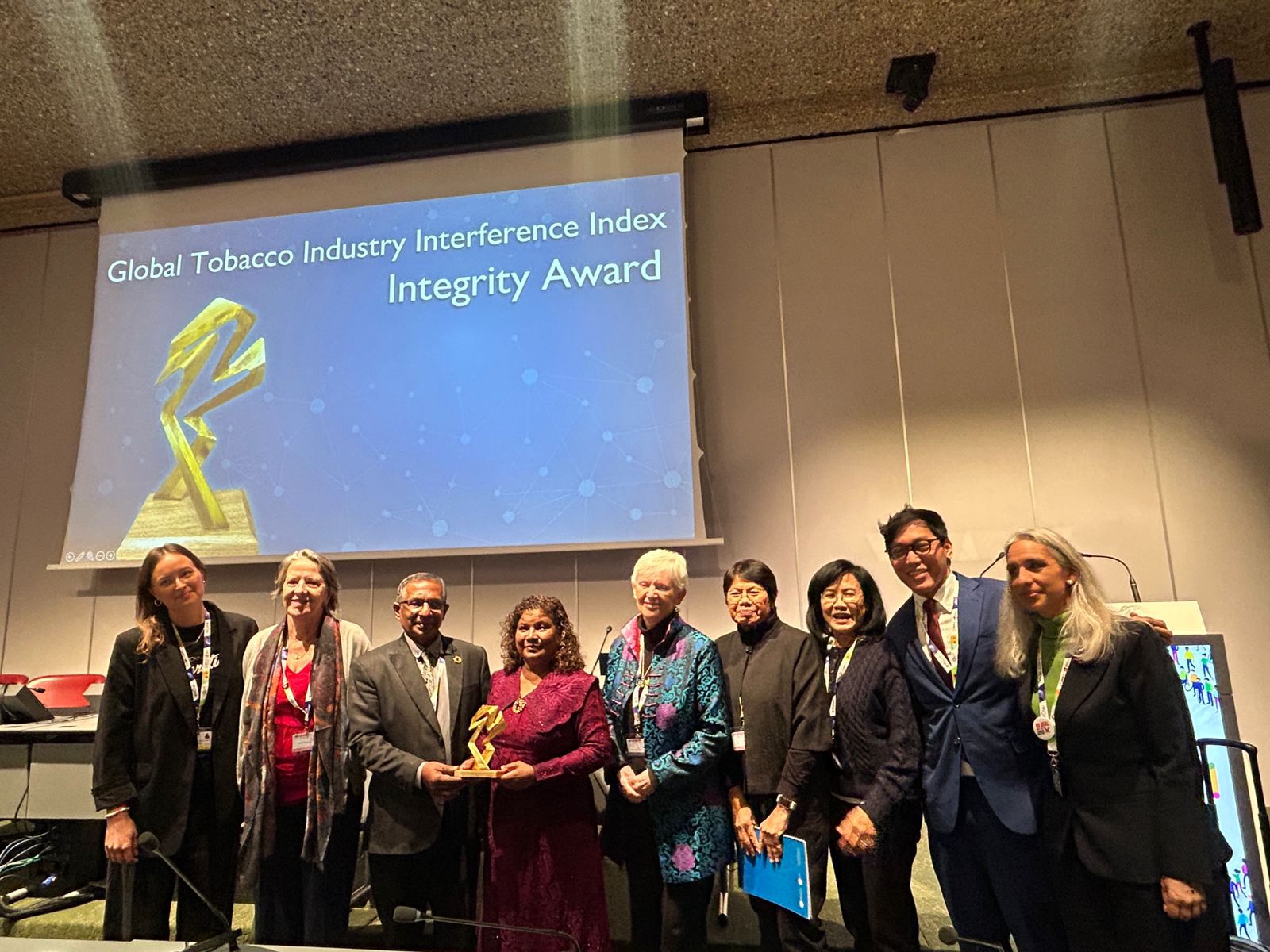 މި އެވޯޑް ރާއްޖޭގެ ކަމާބެހޭ އޮފިޝަލުންނަށް އަރުވާފައިވަނީ މިދިޔަ ހޯމަދުވަހު ސްވިޒަލޭންޑް ގެ ޖެނީވާގައި ފެށި ދުންފަތް ކޮންޓްރޯލް ކުރުމާބެހޭ ބައިނަލް އަޤްވާމީ މުޢާހަދާ އެއްކަމަށްވާ "ފްރޭމްވަރކް ކޮންވެންޝަން އޮން ޓޮބާކޯ ކޮންޓްރޯލް، (އެފް.ސީ.ޓީ.ސީ)" ގެ ގަވަރނަންސް ބައްދަލުވުމުގެ "ކޮންފަރެންސް އޮފް ދަ ޕާރޓީސް (ކޮޕް)" ހަވާސާގެ ތެރޭގައެވެ.