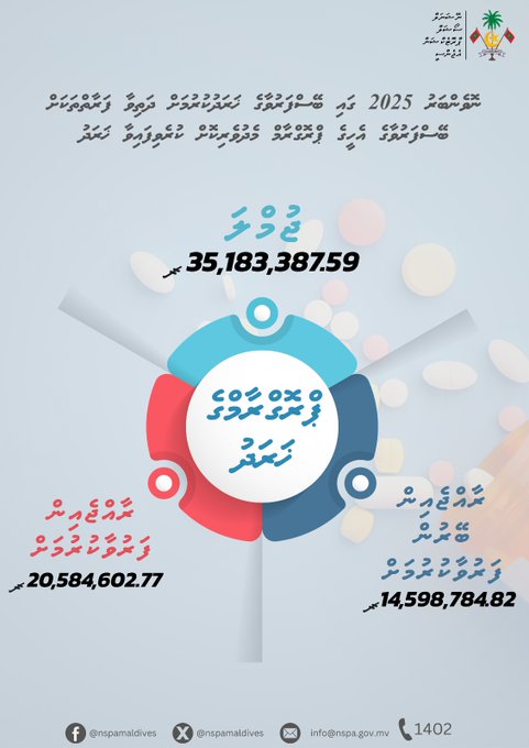 ބޭސްފަރުވާގެ ޚަރަދުތައް ހަމަޖެއްސުމަށް ދަތިވާ ފަރާތްތަކަށް އެހީތެރިކަން ފޯރުކޮށްދިނުމަށް މިދިޔަމަހު އެންސްޕާއިން 35.1 މިލިޔަނަަށްވުރެ ގިނަ ރުފިޔާ ޚަރަދުކޮށްފައިވާކަމަށް ތަފާސްހިސާބުތަކުން ދައްކައިފިއެވެ.