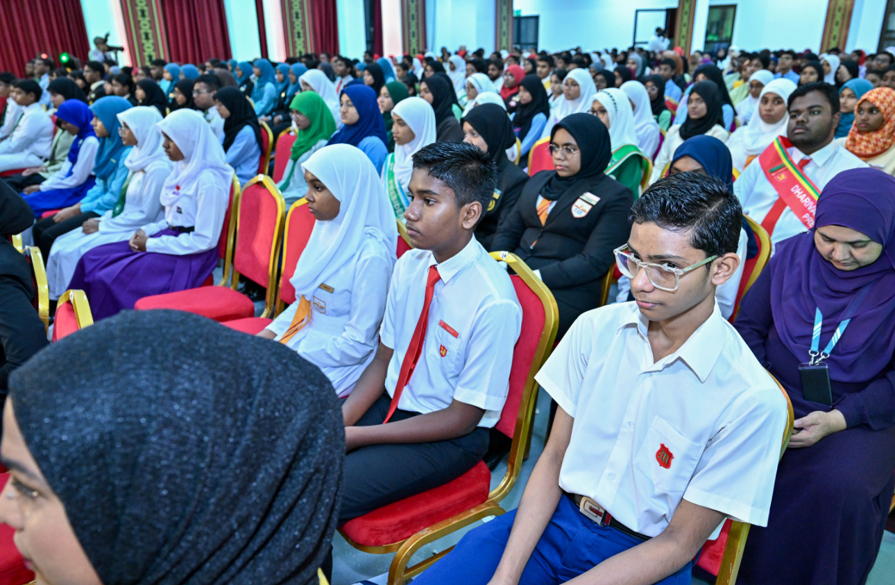 ޤައުމީ އަދަބީ މުބާރާތްތަކުގެ ނަތީޖާ ފާޅުކުރުމަށް ރޭ ޞަލާހުއްދީން ސްކޫލްގައި ބޭއްވި ރަސްމިއްޔާތުގެ ތެރެއިން: ފޮޓޯ/ ރައީސް އޮފީސް