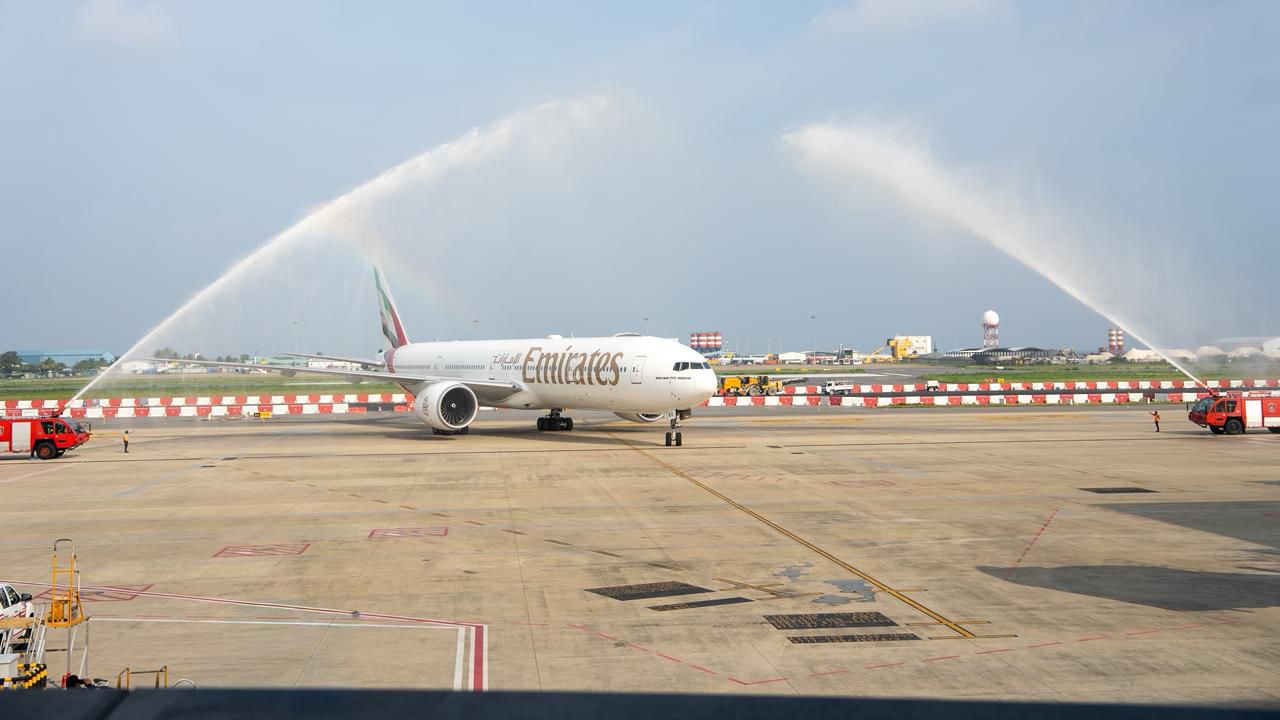 ޓާމިނަލް 1 އިން އެމިރޭޓްސް އަށް ހިދުމަތް ދޭން ފެށުމުގެ ގޮތުން މިއަދު ވަނީ އެ އެއާލައިންގެ ކައުންޓަރުތައް ރަސްމީކޮށް ހުޅުވައި, އެ އެއާލައިނުން ފުރި 310 ފަސިންޖަރުންނަށް ހަދިޔާ ދީފައެވެ. އަދި ޓާމިނަލް 1 އަށް ކައިރި ކުރި އެމިރޭޓްސްގެ ފުރަތަމަ ފްލައިޓް, EK660 އިން ރާއްޖެ އައި 298 ފަސިންޖަރުންނަށް ވަނީ ސަގާފީ ހަރަކާތްތަކާއެކު ހޫނު މަރުހަބާއެއް ކިޔައިފައެވެ.