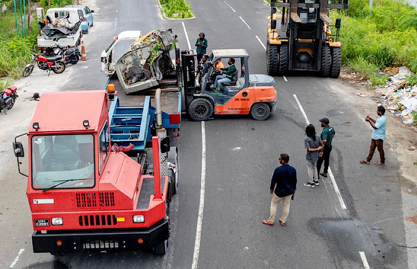 ހުޅުމާލޭ ސިނާއީ ސަރަހައްދުގައި ޤަވާއިދާ ހިލާފަށް ޕާކުކޮށްފައިވާ އުޅަނދުތައް ނަގަނީ