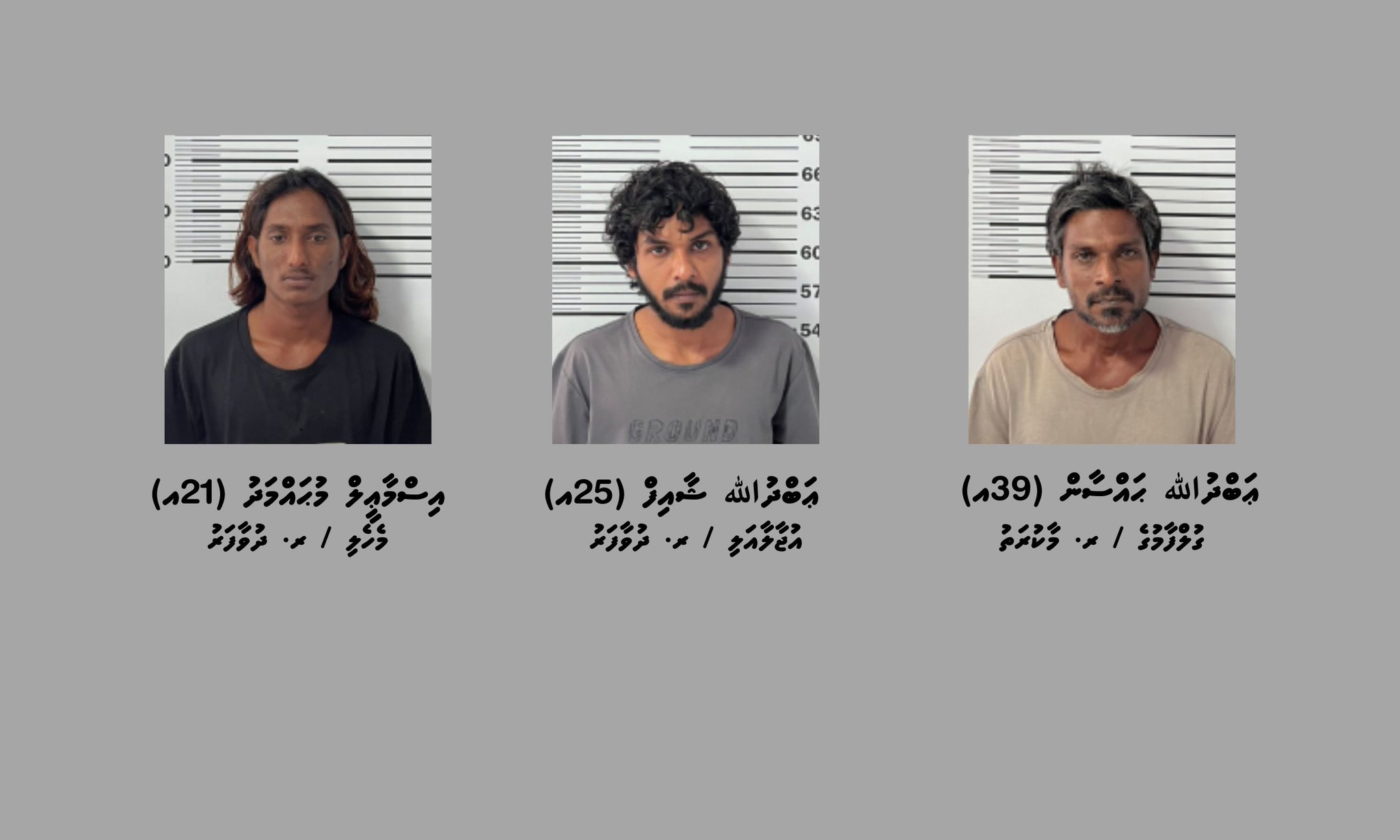 ދުވާފަރު ޕޮލިހާއި ކައުންޓަރ ނަކޮޓިކްސް އިންޓެލިޖެންސް ގުޅިގެން ޑިސެމްބަރު 31 ވަނަ ދުވަހު ހިންގި އޮޕަރޭޝަންގައި ހައްޔަރުކޮށްފައިވަނީ ރ. މާކުރަތު / ގުލްފާމުގެ، ޢަބްދުالله ޙައްސާން (39އ) އާއި ރ. ދުވާފަރު / އުޖާލާއަލި، ޢަބްދުﷲ ޝާއިފް (25އ) އާއި ރ. ދުވާފަރު / މެހެލި، އިސްމާޢީލް މުޙައްމަދު (21އ) އެވެ.