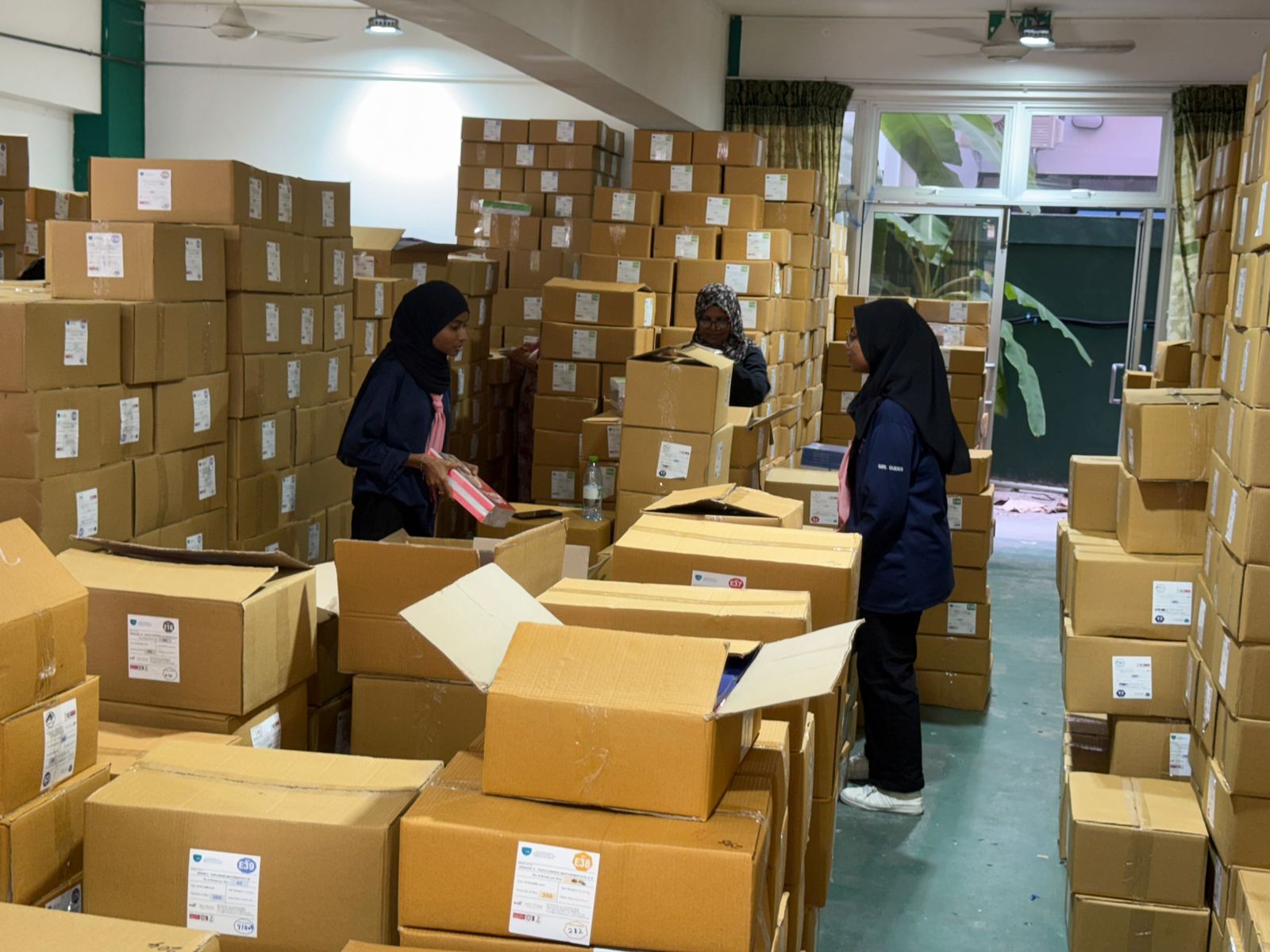 އަތޮޅުތެރެއަށް ގެންދިއުމަށް ފޮތްތައް ހަމަކުރަނީ... ފޮޓޯ: ދައުލަތުގެ މީޑިއާ