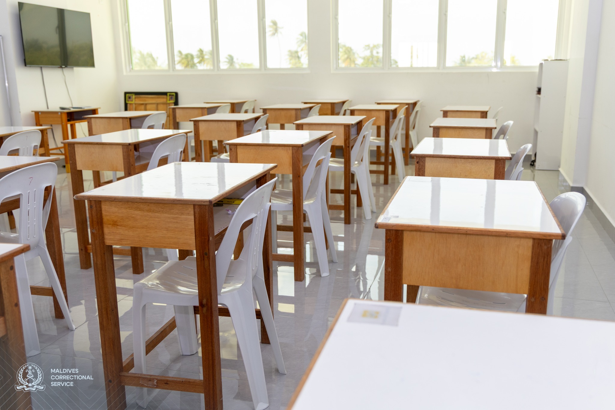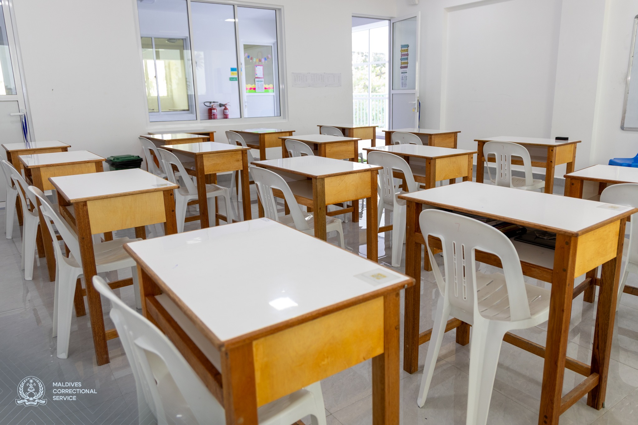 އައްސޭރި ޖަލުގެ ގައިދީންނާއި އޮފިސަރުން ޖަހައިދިން ޑެސްކުތައް.. ފޮޓޯ: ކަރެކްޝަނަލް ސާވިސް