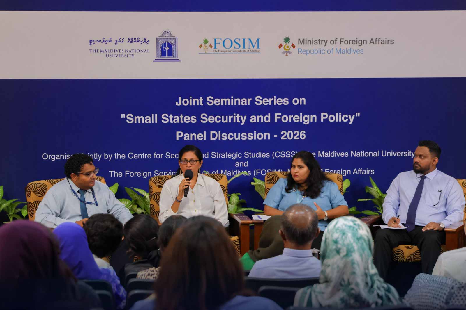 ކުދި ޤައުމުތަކުގެ ސަލާމަތާއި ހާރިޖީ ސިޔާސަތްތަކާ ގުޅޭގޮތުން މޯލްޑިވްސް ނެޝަނަލް ޔުނިވަރސިޓީ އާއި ފޮރިން ސަރވިސް އިންސްޓިޓިއުޓް އޮފް މޯލްޑިވްސް (ފޯސިމް) ގުޅިގެން ބާއްވާ ހާއްސަ ސެމިނަރ މިއަދު ކުރިއަށް ގެންގޮސްފި އެވެ.
