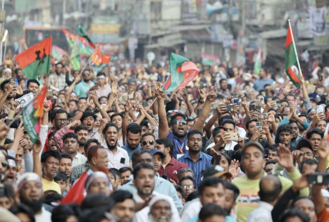 ބަންގްލަދޭޝްގެ ކުރީގެ ބޮޑުވަޒީރު ޝައިޚް ހަސީނާގެ ވެރިކަން ޒުވާނުންގެ ވަރުގަދަ އިހުތިޖާޖުތަކަކަށްފަހު ވެއްޓުނު ފަހުން ބޭއްވި ފުރަތަމަ އާންމު އިންތިޚާބު ބަންގްލަދޭޝް ނޭޝަނަލިސްޓް ޕާޓީ (ބީއެންޕީ) އިން ބޮޑު އަޣުލަބިއްޔަތަކުން ކާމިޔާބުކޮށްފިއެވެ.