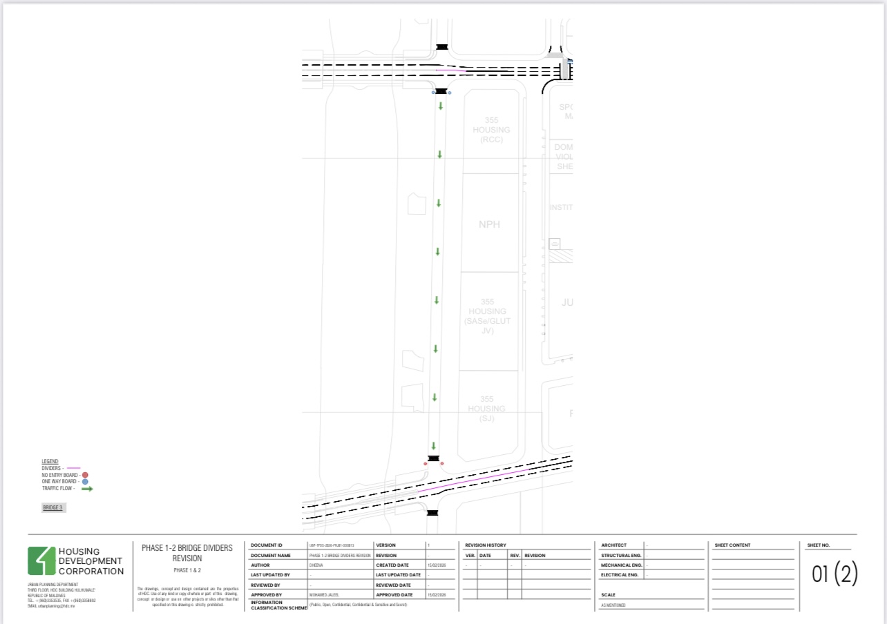 ހުޅުމާލޭގެ ކުރެދިމާ ހިނގުން ނަމަކަށް ކިޔާ މަގަކީ އެއްކޮޅަށް ދުއްވޭ މަގެއްގެ ގޮތުގައި ހައުސިން ޑިވެލޮޕްމަންޓް ކޯޕަރޭޝަން (އެޗްޑީސީ) އިން ބަދަލުކޮށްފިއެވެ.