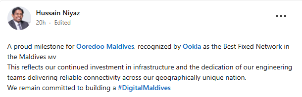 ރާއްޖޭގެ އެންމެ ހަލުވި ފިކްސްޑް ނެޓްވޯކްގެ ގޮތުގައި އޫކްލާއިން އުރީދޫ ބަލައިގަތުމަކީ ޝަރަފެއް: ނިޔާޒް