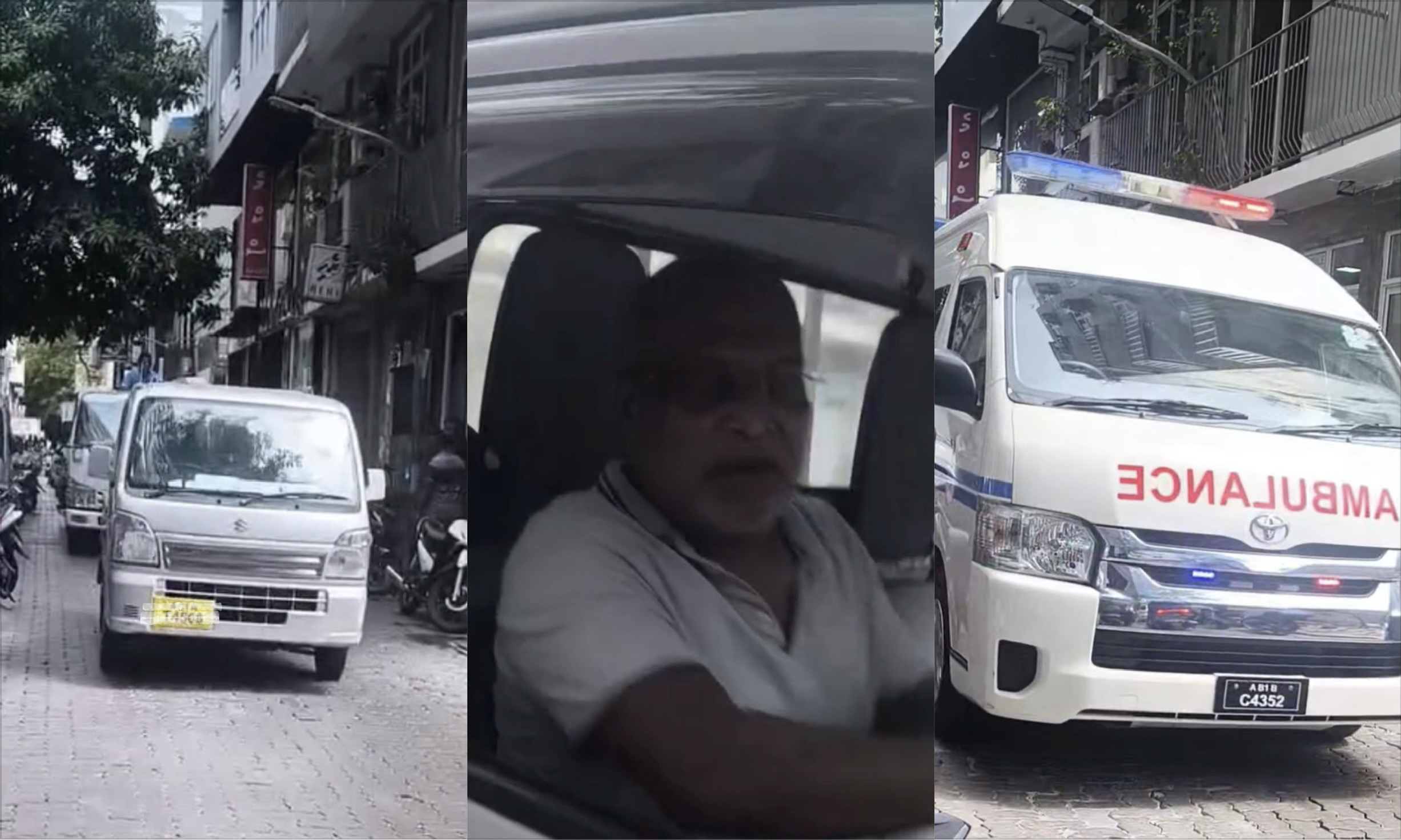 ކާރުތަކުން ބަރުގޮނު އަޅަމުންދިޔައިރު، އެމްބިޔުލާންސްއިން ދިޔައީ ސައިރެން އަޅަމުންނެވެ. އަދި މަންޒަރު ދުށް ފަރާތުން ބުނެފައިވާގޮތުން، އެމްބިއުލާންސްގެ ސައިރަންގެ އެޅުމަށްފަހު ކުޑަ ވަގުތުކޮޅަކަށް ސައިރަން މަޑުކޮށްލާފައި ޓޯން ބަދަލުކޮށް ބާރަށް ސައިރަން އަޅަންފެށިއެވެ.