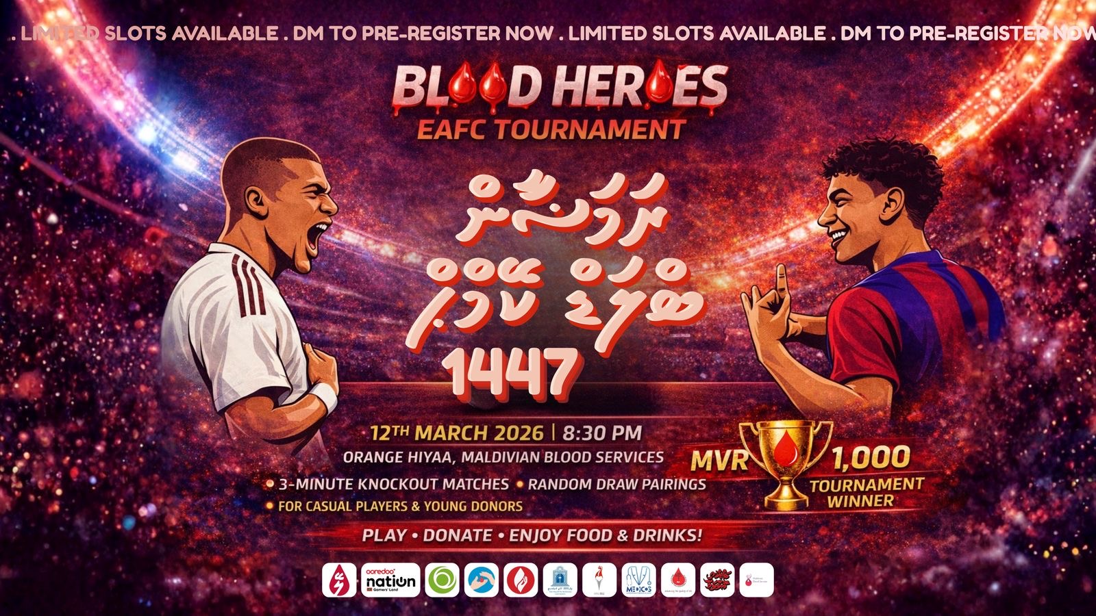 ރަމަޟާން ބްލަޑް ކޭމްޕް 1447 ގެ ހަރަކާތްތަކުގެ ތެރެއިން، ޒުވާނުން ލޭ ހަދިޔާކުރުމަށް ހޭލުންތެރިކުރުވުމުގެ މަގުސަދުގައި "ބްލަޑް ހީރޯސް އީ.އޭ.އެފް.ސީ" ވީޑިއޯ ގޭމް މުބާރާތް ބޭއްވުމަށް ނިންމައިފިއެވެ.