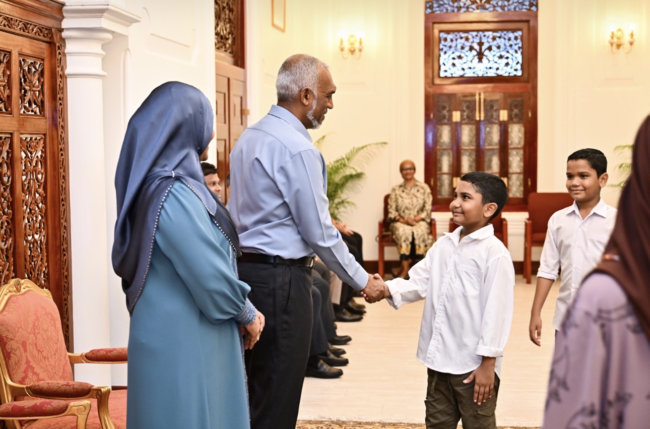 ރައީސްގެ ދެކަނބަލުން ޢީދު ސަލާމްކުރެއްވުން ޢީދު ދުވަހު ހެނދުނު މުލިއާ ގޭގައި