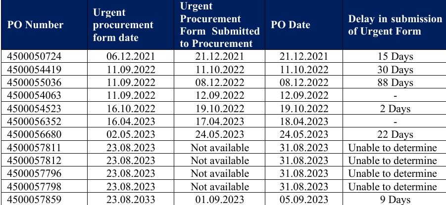 އޮޑިޓް ރިޕޯޓުގައި ފާހަގަކޮށްފައިވާ ގޮތުގައި، 2022 އަދި 2023 ވަނަ އަހަރު އުޅަނދުތައް ކުއްޔަށް ހިފާފައިވަނީ "ކުއްލި ހާލަތުގެ" ޕްރޮކިއުމަންޓް އުސޫލުގެ ދަށުންނެވެ. ނަމަވެސް، ބައެއް މަސައްކަތްތައް ނިންމިތާ 8 މަސް ދުވަސް ފަހުންވެސް ޕްރޮކިއުމަންޓް ފޯމުތައް ހުށަހަޅާފައިނުވާކަން ވަނީ ފާހަގަކުރެވިފައެވެ. އަދި ބައެއް ފޯމުތަކުގައި ޕްރޮކިއުމަންޓް ސެކްޝަނުގެ ސޮއި ނެތުމުގެ ސަބަބުން، އެ ފޯމުތައް ލިބުނު ސީދާ ތާރީޚެއް އެނގޭކަށް ނެތެވެ.