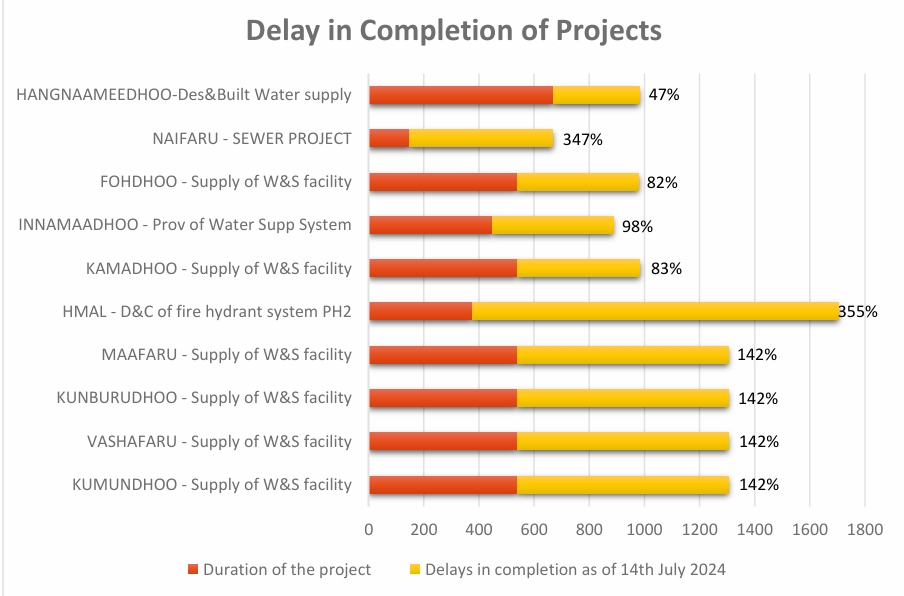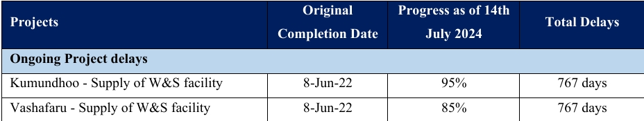 އުޅަނދުތައް ކުއްޔަށް ހިފުމަށް "ކުއްލި ހާލަތު" ބޭނުންކުރި ސަބަބެއް ކަމަށް ކުންފުނިން ބުނެފައިވަނީ މަޝްރޫއުތައް ލަސްވިޔަ ނުދިނުމަށެވެ. ނަމަވެސް، އޮޑިޓް ރިޕޯޓުގައިވާ ތަފާސްހިސާބުތަކުން ފެންނަ ގޮތުގައި ގިނަ މަޝްރޫއުތައް ވަނީ އިންތިހާއަށް ލަސްވެފައެވެ. މީގެ ތެރޭގައި ފަޔަރ ހައިޑްރަންޓް ސިސްޓަމް ފަދަ މަސައްކަތްތައް ނިންމަން ކަނޑައެޅި ތާރީޚަށްވުރެ 1,331 ދުވަސް އިތުރަށް ހޭދަވެފައިވާކަން ފާހަގަކުރެވެއެވެ.