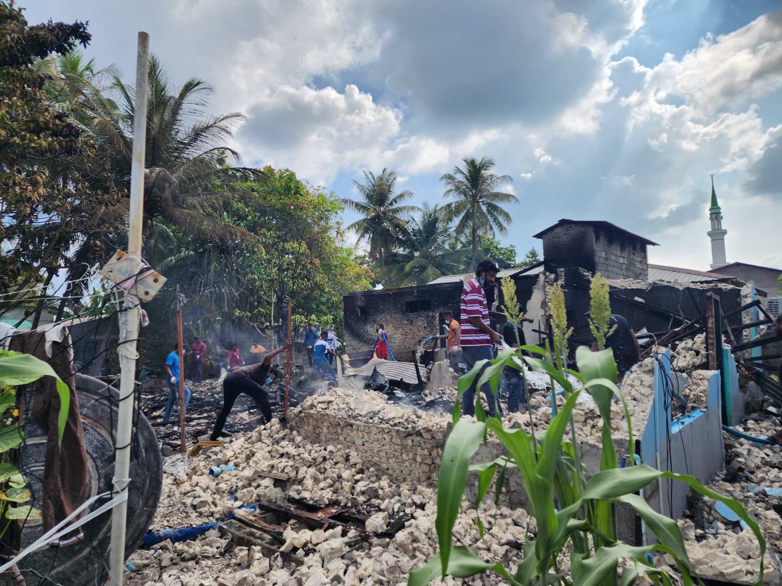 އެގޭގައި އަލިފާން ރޯވީ މިއަދު މެންދުރު ފަހު އެވެ. އަލިފާން ނިއްވާލެވުނުއިރު މުޅި ގެ އެކީހެން ވަނީ އަނދާފަ އެވެ.