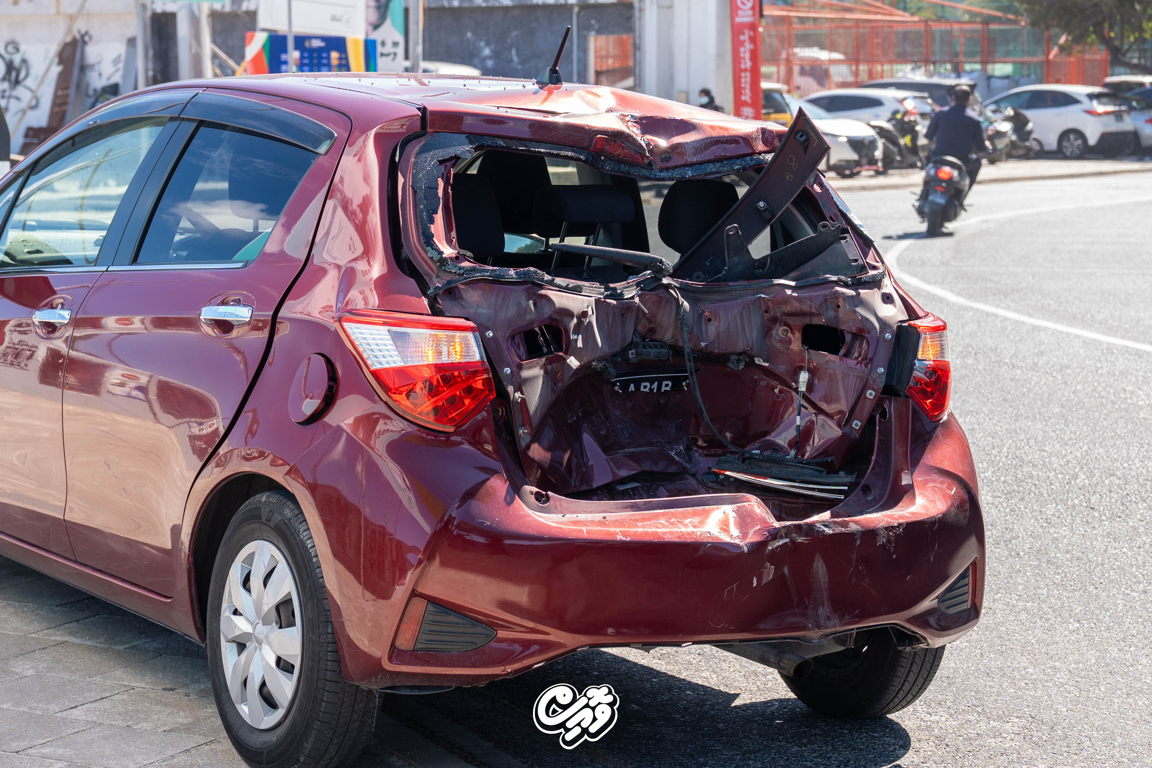 ބާރު ސްޕީޑްގައި ދުއްވި ސައިކަލެއް ކާރެއްގެ ފަހަތުގައި ޖެހި ހިނގި ނުރައްކާތެރި އެކްސިޑެންޓެއްގައި ދެމީހަކު ޒަޚަމްވެއްޖެއެވެ.