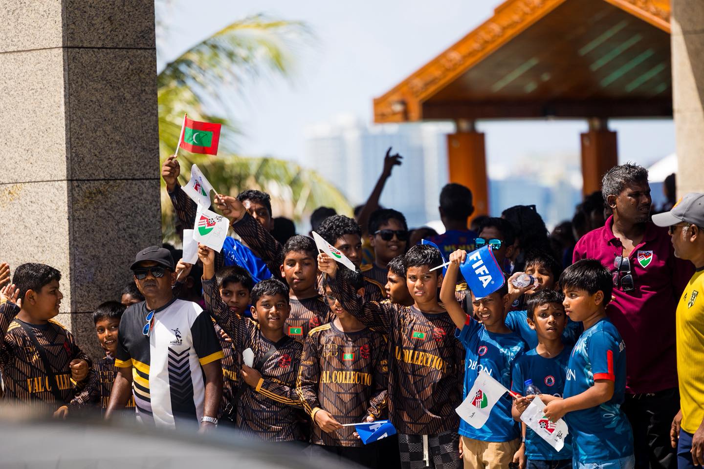 ދުނިޔޭގެ ފުޓްބޯޅައާ ބެހޭ މައި އިދާރާ، ފީފާގެ ރައީސް ޖިއާނީ އިންފަންޓީނޯ ރާއްޖެ ވަޑައިގަތުން.. ފޮޓޯ: އެފްއޭއެމް