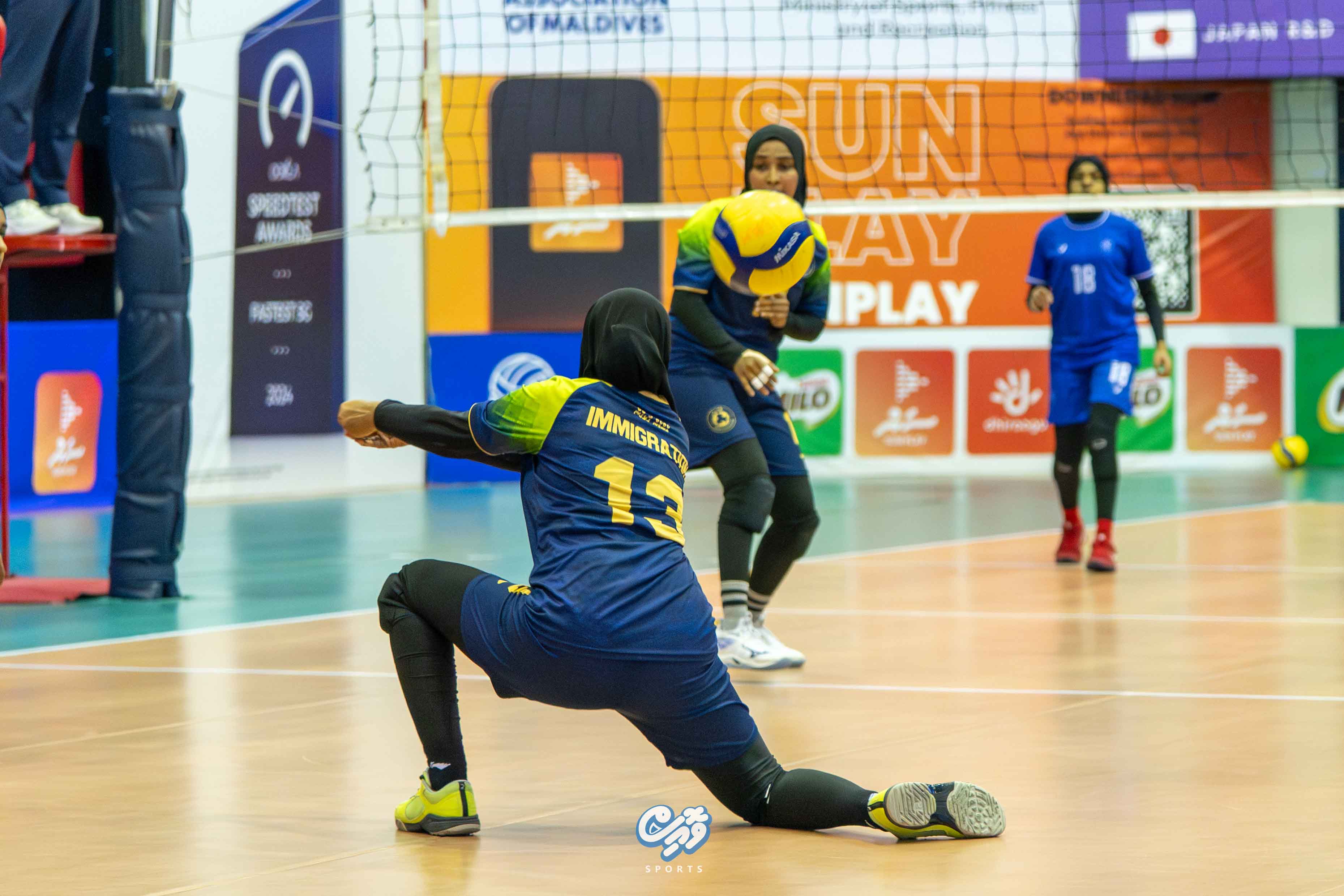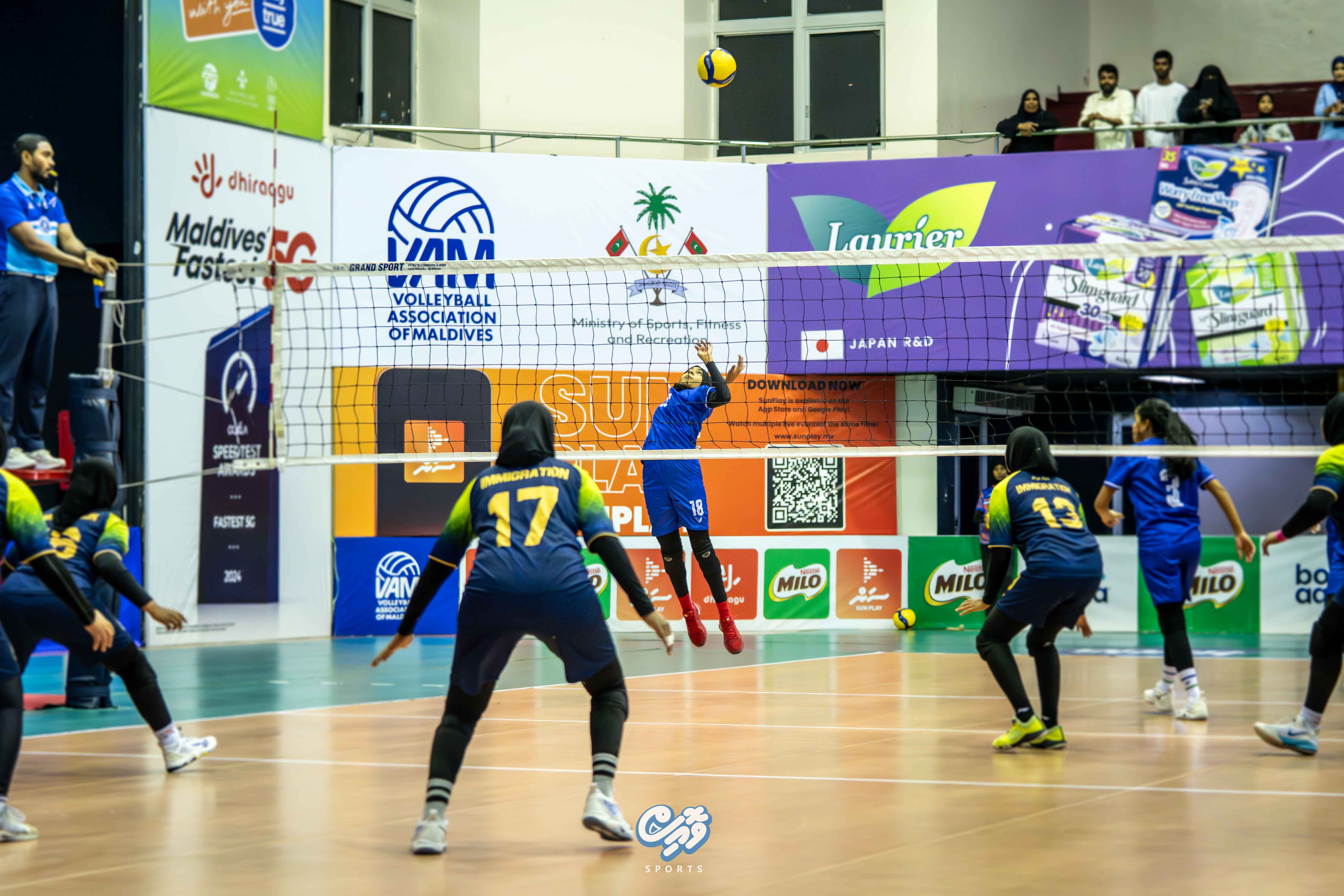 އިންޓަރ ޢޮފީސް ވޮލީބޯޅަ މުބާރާތް 2025 ސެމީ ފައިނަލް / އެމް.ޓީސީސީ އަދި މޯލްޑިވްސް އިމިގުރޭސަން ކުޅުނު މެޗު ޕޮޓޯ: ނިއުމަތުﷲ-ވޮއިސް